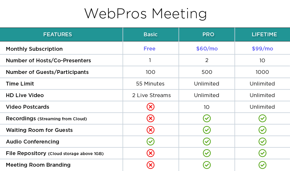 • A FREE WebPros Meeting room.